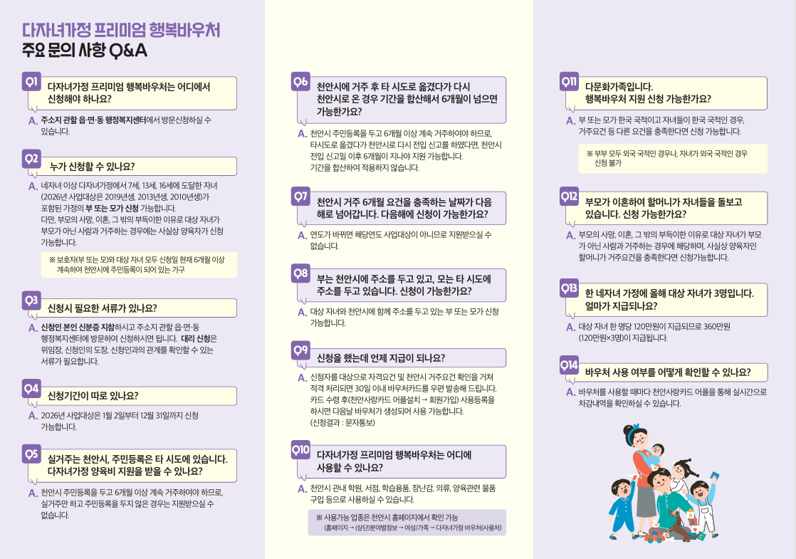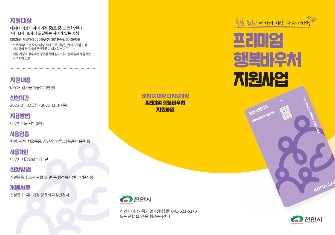 천안시「네자녀 이상 다자녀가정 프리미엄 행복바우처 지원 사업」안내 | ||||